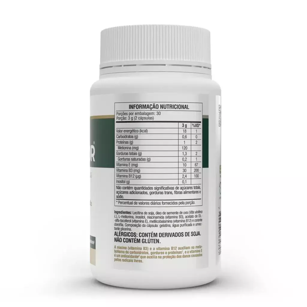 Ingredientes: Lecitina de soja, óleo de semente de uva (Vitis vinifera L.), L-metionina, inositol, niacinamida (vitamina B3), acetato de DL-alfa-tocoferol (vitamina E), metilcobalamina (vitamina B12) e corante clorofila. Composição da cápsula: gelatina, água purificada e umectante glicerina.